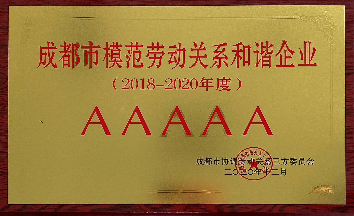 成都市模范勞動關(guān)系和諧企業(yè)AAAAA