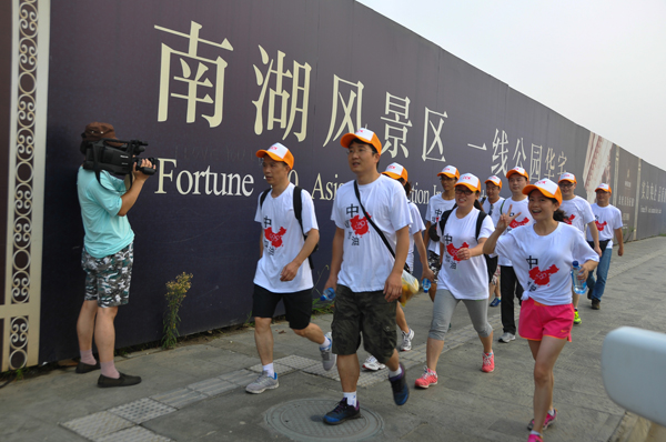 2014年8月2日上午6點(diǎn)50左右,活動(dòng)正式啟幕。培訓(xùn)班各小組學(xué)員近70人在園區(qū)集合,集團(tuán)總裁王洪交代了活動(dòng)注意事項(xiàng)后,大家沖出起跑線,開始了15km的戶外行走。