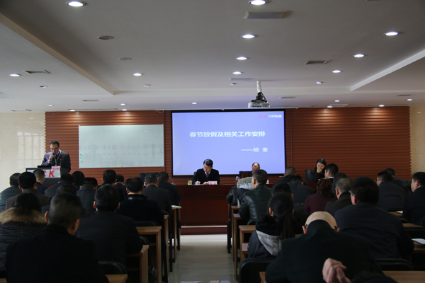 集團(tuán)公司副總裁胡奎宣讀春節(jié)放假及相關(guān)工作安排說(shuō)明。