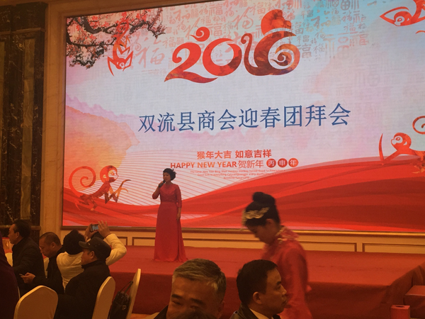 執(zhí)委會(huì)結(jié)束后,雙流縣商會(huì)迎春團(tuán)拜會(huì)在原成都軍區(qū)黎明老將軍的書(shū)畫(huà)題作中拉開(kāi)帷幕。川開(kāi)集團(tuán)、華偉通訊、華體照明、航都酒店等會(huì)員單位為晚會(huì)帶來(lái)了精彩的歌舞表演。