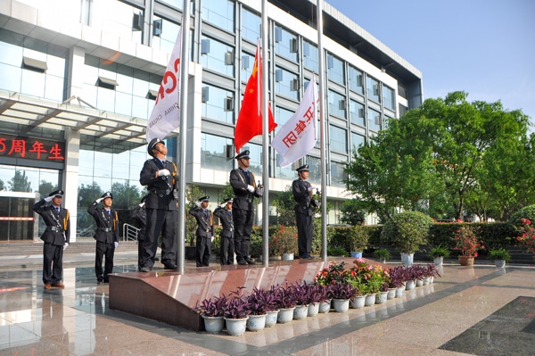 2015年5月8日上午8時30分,集團管委會領導及各公司總經理與身著35周年慶典統一定制的T恤的全體員工,整齊列隊集團辦公大樓前的廣場,舉行莊嚴的升旗儀式。全體人員神采奕奕,整個場面莊重嚴肅。