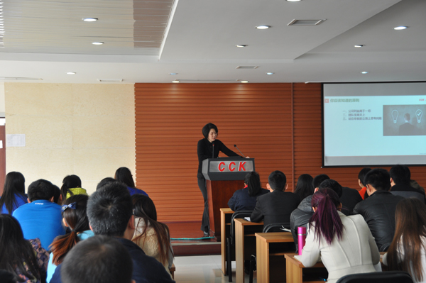 集團(tuán)副總裁童君給新員工做職業(yè)素養(yǎng)培訓(xùn)。