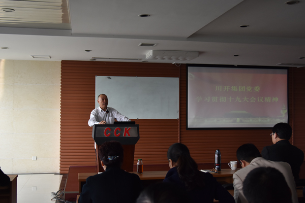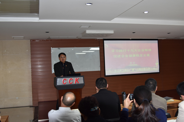 集團黨委委員、總裁姜磊結(jié)合十九大精神,做了學(xué)習領(lǐng)會十九大關(guān)于民營經(jīng)濟發(fā)展的論述,以及民營企業(yè)未來的轉(zhuǎn)型發(fā)展路徑等方面做了詳細的講解。