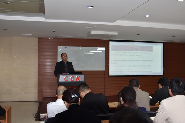 黨委副書記李懷玉講解了黨章修改、中紀委報告及全面從嚴治黨相關(guān)內(nèi)容。黨的十九大會議充分肯定了十八屆中央紀律檢查委員會的工作,總結(jié)了實踐經(jīng)驗、明確了下一步著力重點,根據(jù)黨的實踐發(fā)展和理論創(chuàng)新,對黨章進行了適當修訂。大會選舉產(chǎn)生了堅強有力的新一屆中央領(lǐng)導(dǎo)集體和中央領(lǐng)導(dǎo)機構(gòu)。